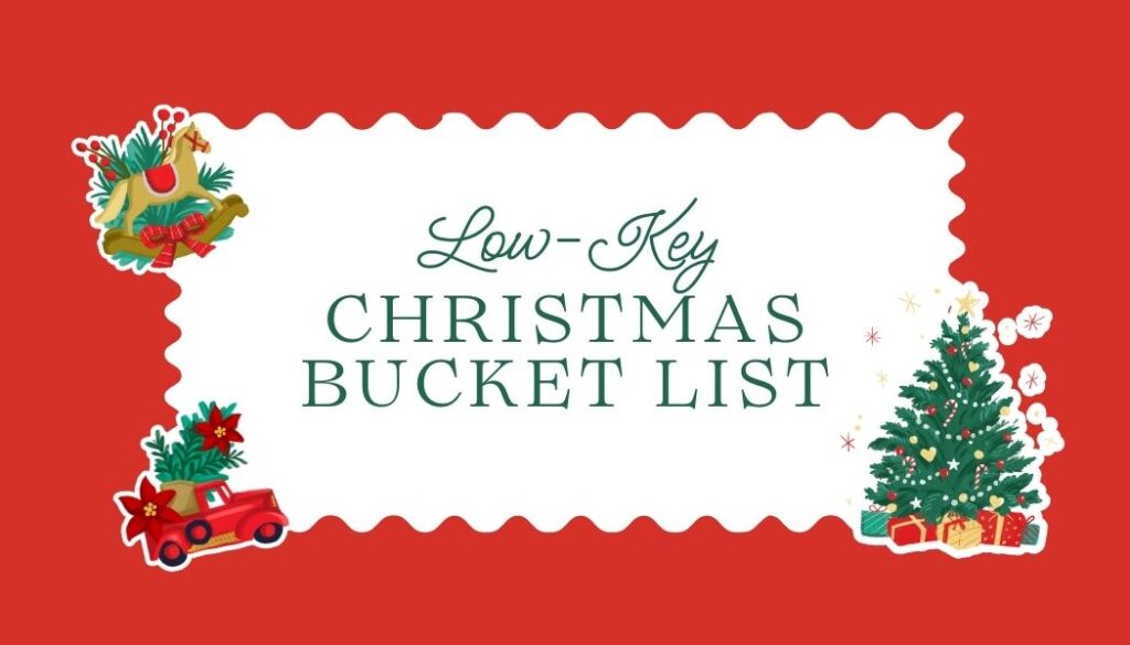 Are you looking for a Christmas bucket list, but you don’t want it to add stress to your already stressful life? You’re in the right place. I present: a low-key Christmas bucket list!